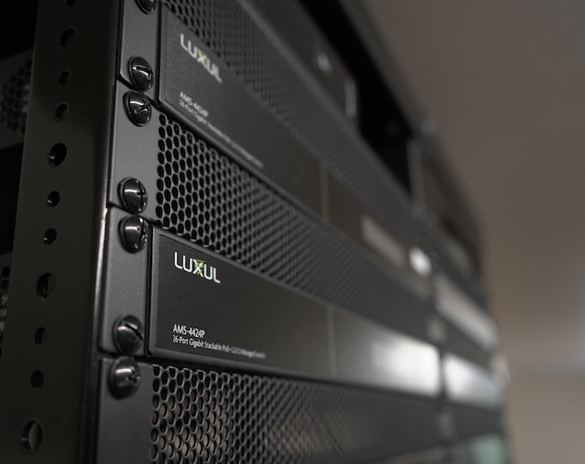 At the heart of the system is the Epic 5 dual-WAN Gigabit router. As well as delivering gigabit WAN-to-LAN speeds for ultra-fast streaming and bandwidth-intensive applications, it features integrated Domotz technology for remote management and Router Limits content management. In addition, Luxul’s AMS-4424P AV series 26-port/24 POE+ Gigabit managed switch provides superior network performance and seamless scalability of up to 16 switches (384 ports).
