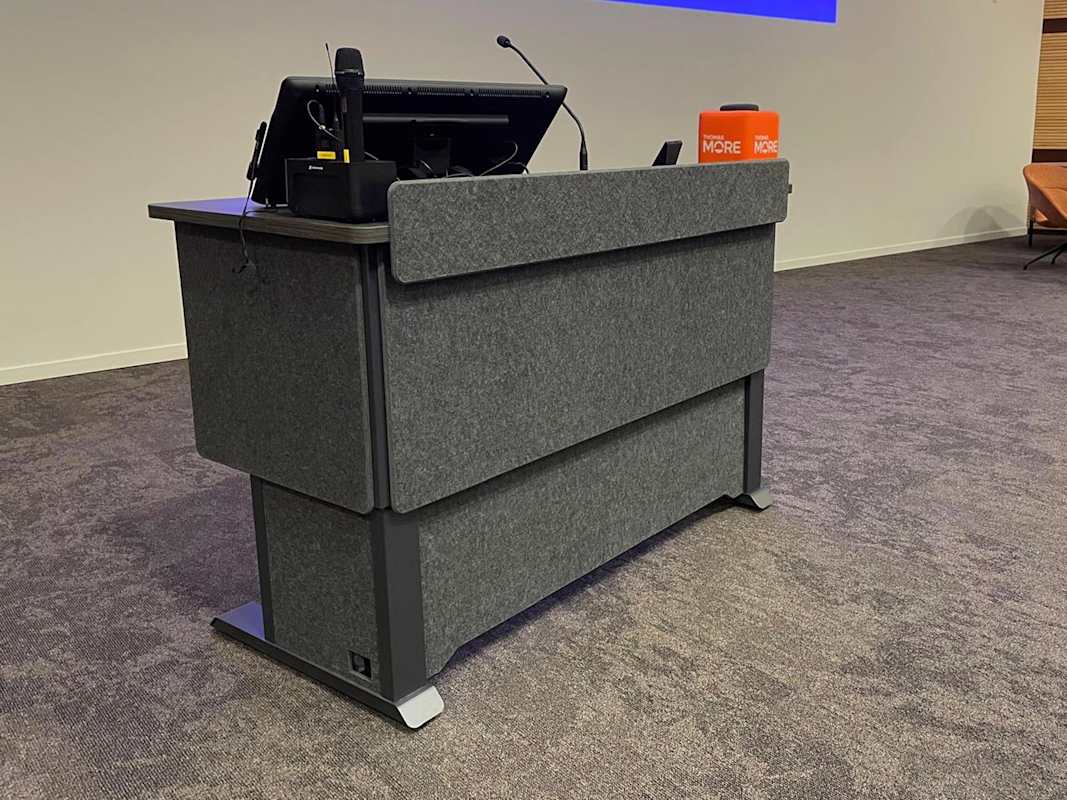 The Forum Lectern offered a key feature that made it ideal for the space: electric height adjustability. This allowed lecturers to choose whether to present while standing or sitting, making the lectern accessible to all. The sleek design and customizable finish ensured the new furniture would integrate naturally into the existing environment without disrupting the room.
