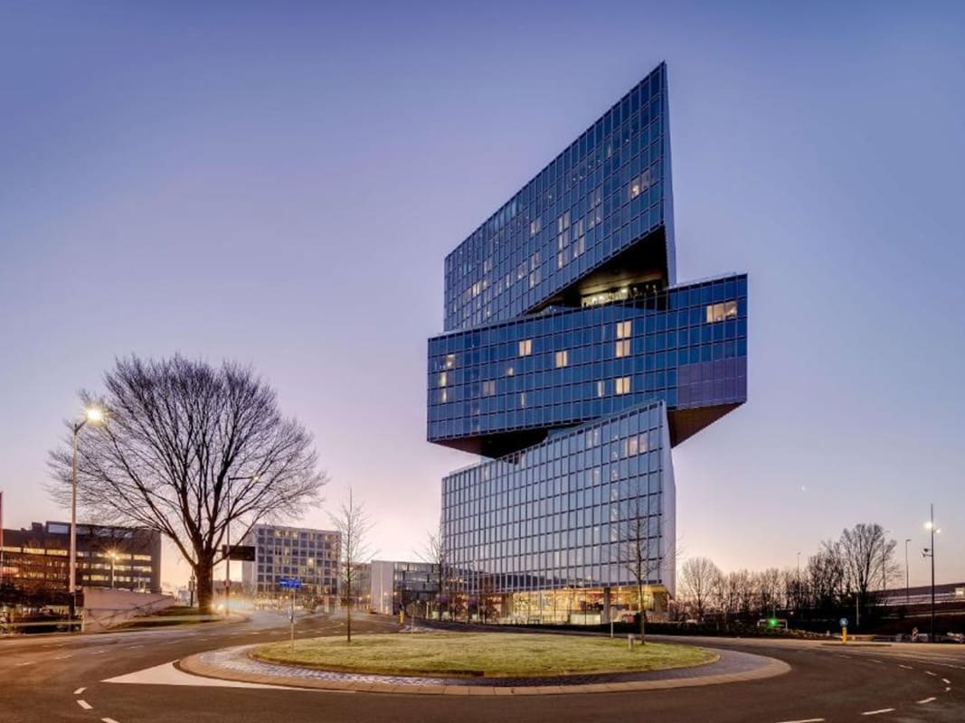 Located all the way up on the 24th floor, the NHOW Amsterdam RAI Hotel’s meeting room has a stunning view of the city with floor-to-ceiling windows. Due to the height of the ceiling, the old projection screen required an extended black drop of 300cm. The old screen was over 5 meters high and blocked a large part of the windows. Additionally, the screen was non-tensioned and not suitable for high resolution projection. It also started to show some signs of wear and tear.