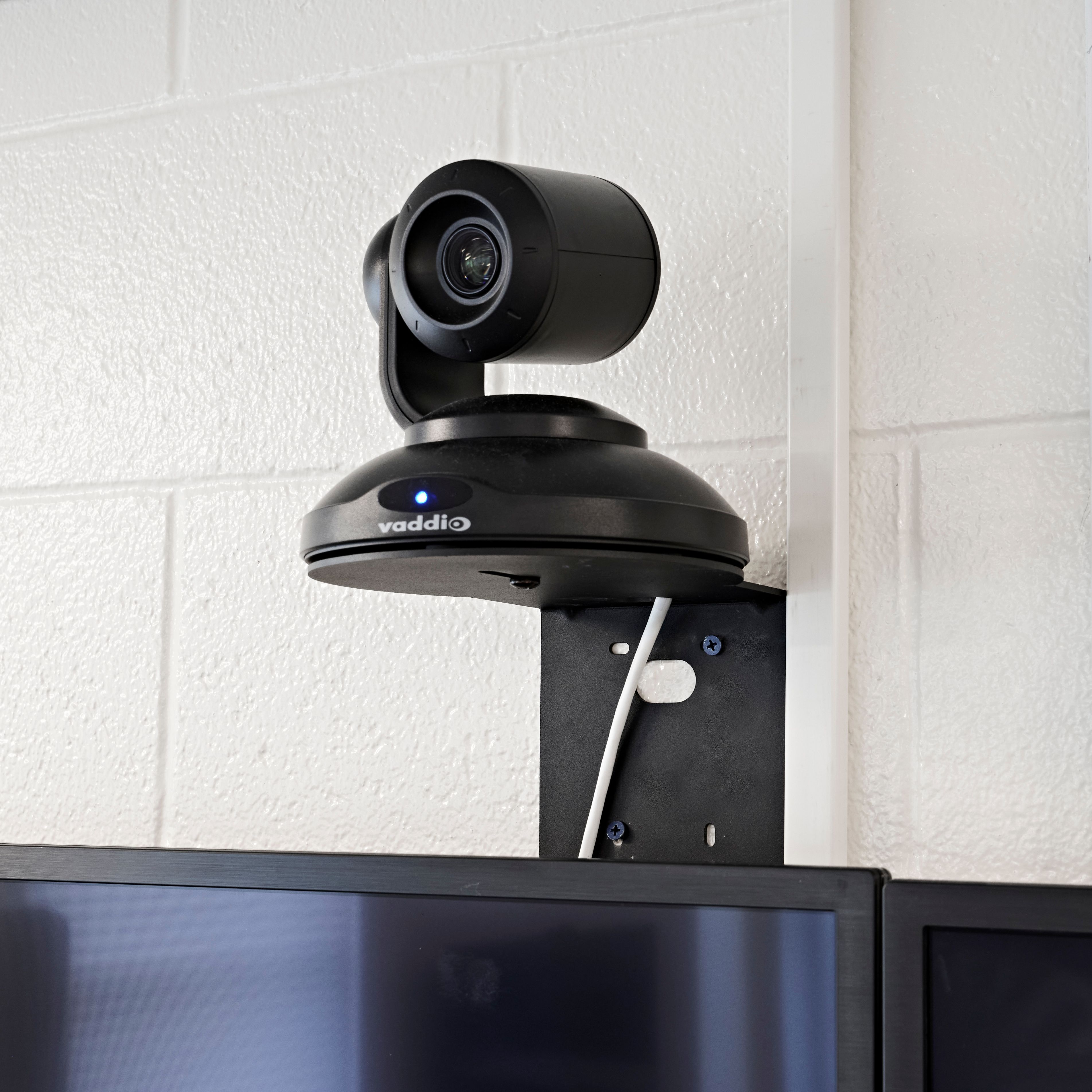 The upshot of the project was they integrated 20 other rooms for enhanced lecture capture using Vaddio’s EasyIP camera systems. Large displays near the cameras on the far end of the room allow the lecturers to read their presentation notes and look like they are speaking directly to the students joining remotely.