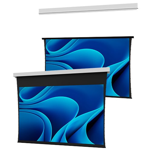 - Myriad Reveal: electric screen available in sizes from 4–5 m, with versatile brackets for both ceiling and wall mounting