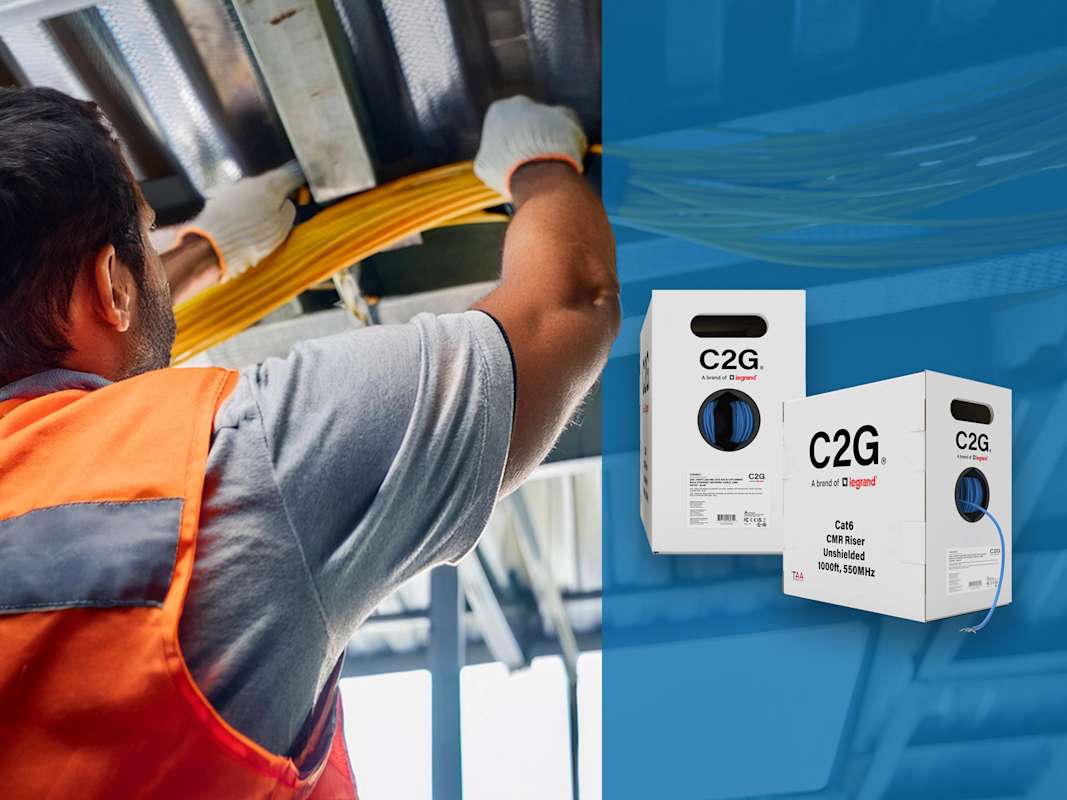 DAYTON, Ohio — Oct. 16, 2024 — C2G, a brand of Legrand | AV, today announced the availability of its new range of bulk Ethernet cables, including Cat5e, Cat6, and Cat6a options, available in 1,000-feet (304.8-meter) spools of various colors. This high-quality category cable is compliant with TAA and meets ANSI/TIA 568.2-D standards. With the line, C2G also introduces innovative packaging that helps save space and improves cable payout.