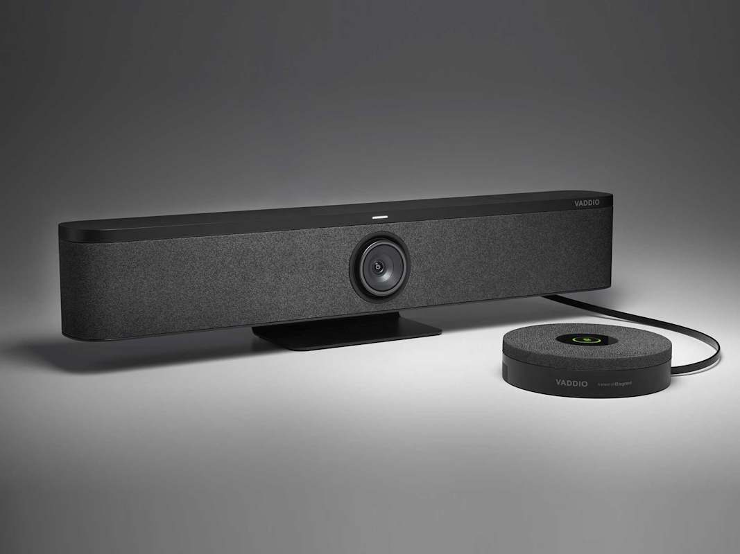 Photo Caption: Vaddio introduces the Venture® VideoBAR all-in-one video conferencing bar and Venture TableMIC expansion microphones.