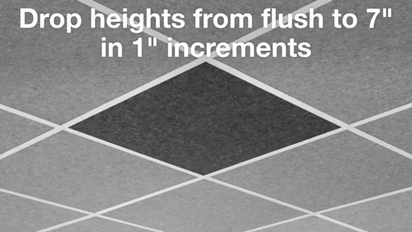 Available in drop heights up to 7" down from the ceiling in 1" increments.
