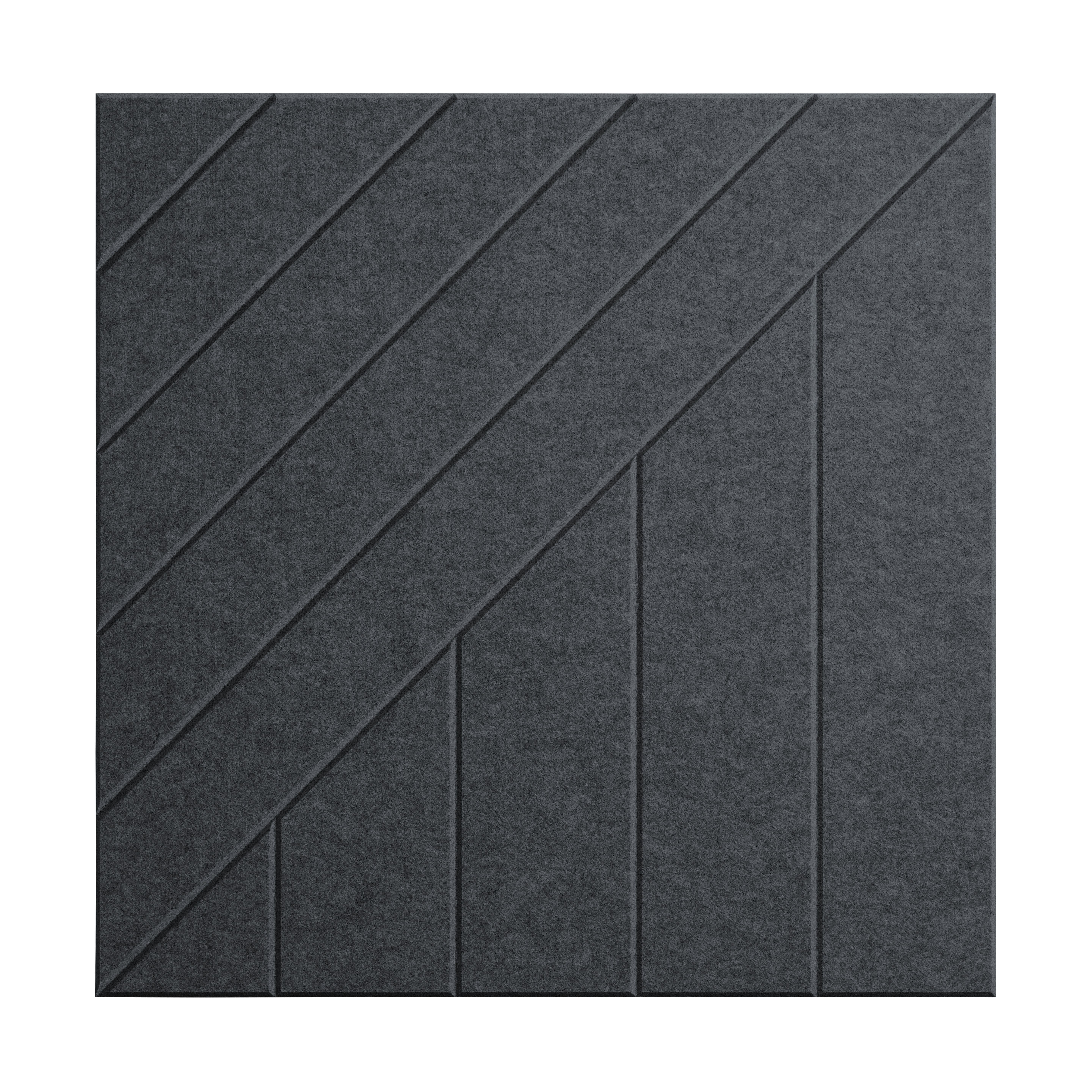 0.35" thick, 2' x 2' square sound absorbing wall tiles available in 4 designs or solid panels that can be arranged to create a myriad of unique patterns.