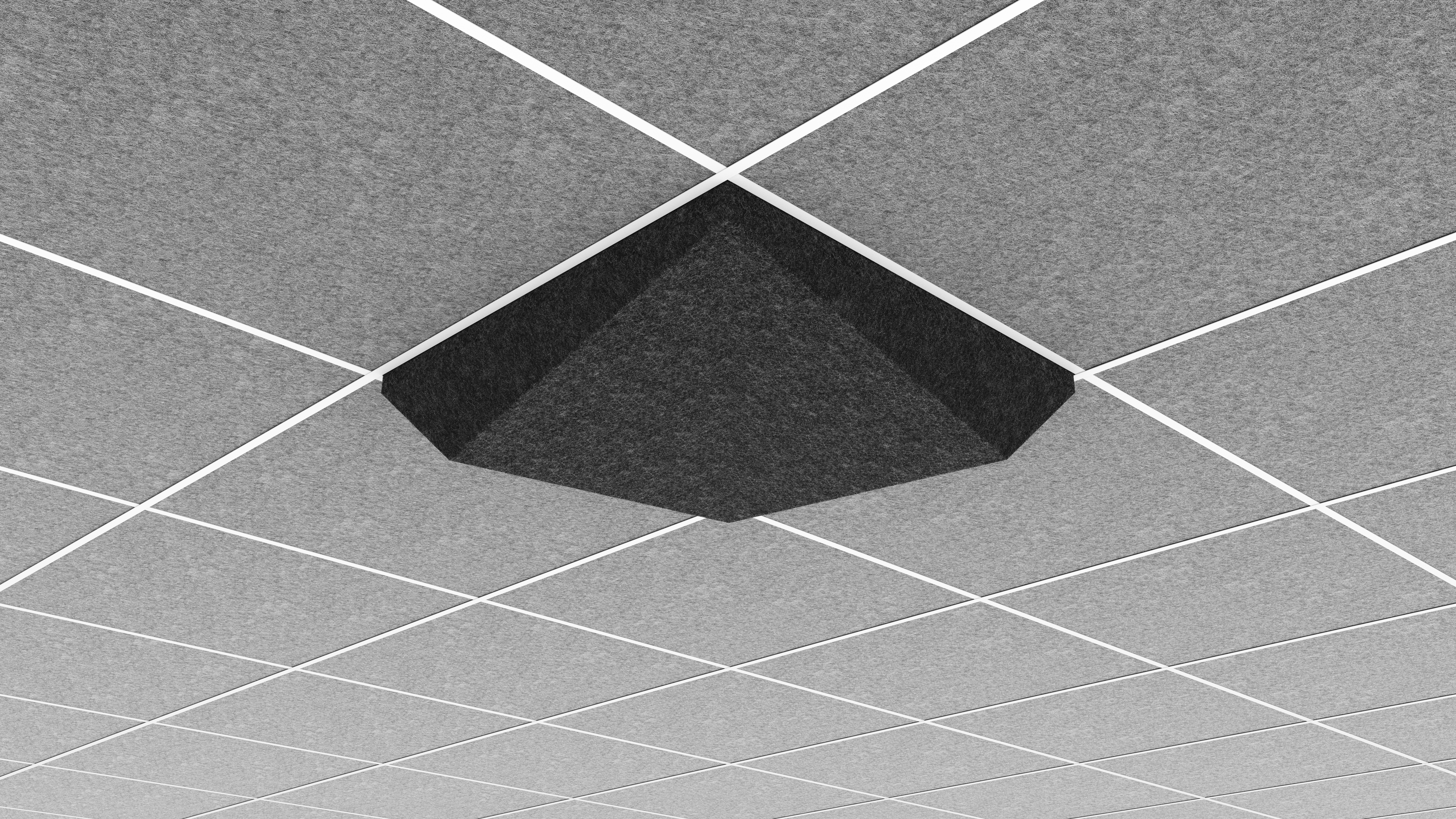 This sound-absorbing tile fits snugly within a 2' x 2' grid ceiling and is designed for 9/16" and 15/16" T grid ceilings. You can specify your ideal drop position up to 7" down from the ceiling plane in 1" increments. Engineered to absorb sound and deliver more comfortable interior spaces, it can be installed in existing or new grid ceilings, integrated into drywall ceilings with ACT transition, or used in a suspended ceiling cloud.