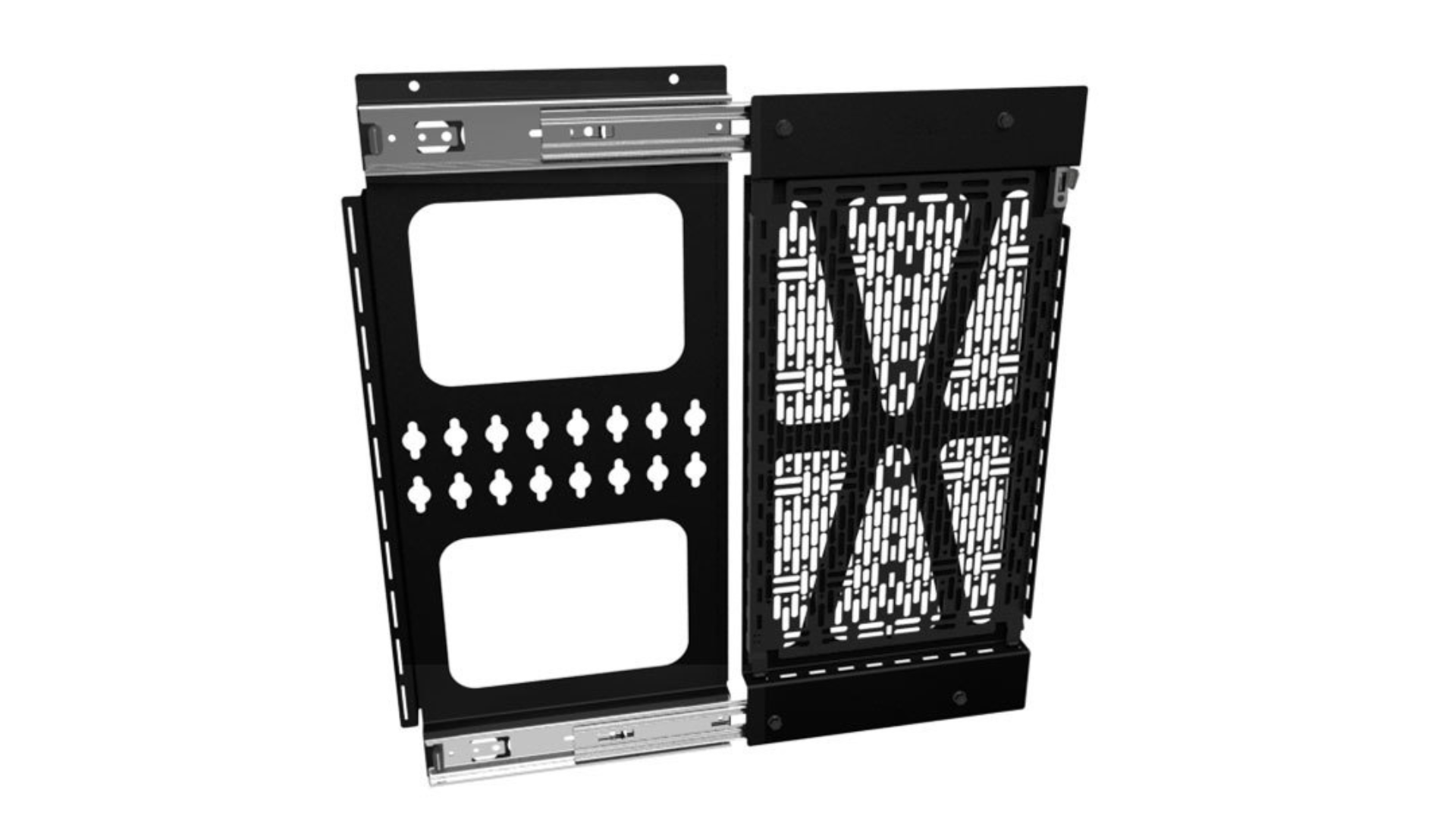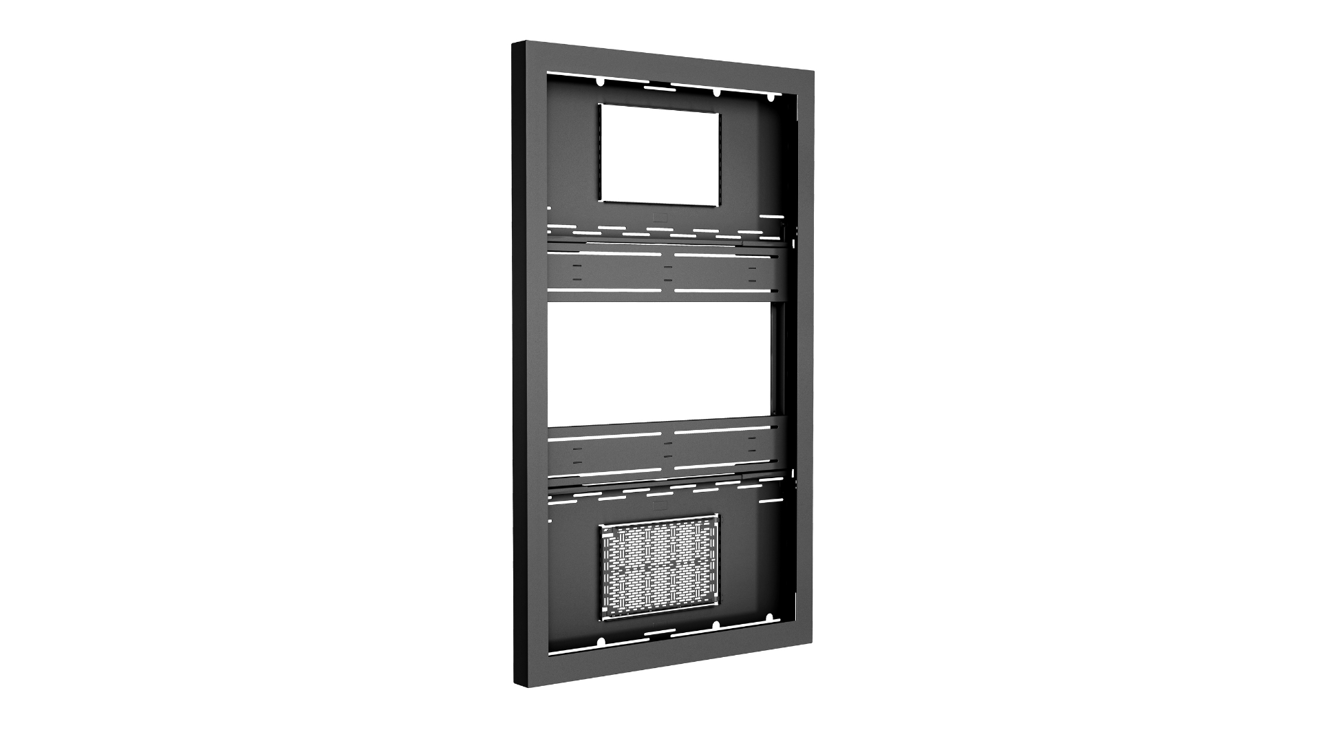 Facilitate easy, concealed mounting of AV equipment behind displays. The flexible design can be oriented to slide sideways or down for optimal positioning.
