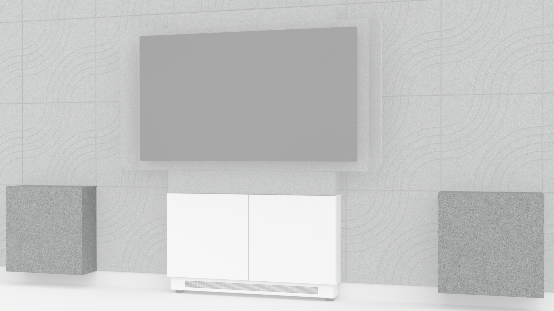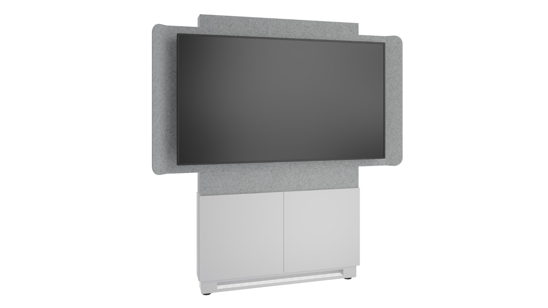 Designed for hybrid collaboration, the Forum Display Stand includes a display shroud with acoustic felt to ensure the highest quality audio experience for both in-person and remote audiences.