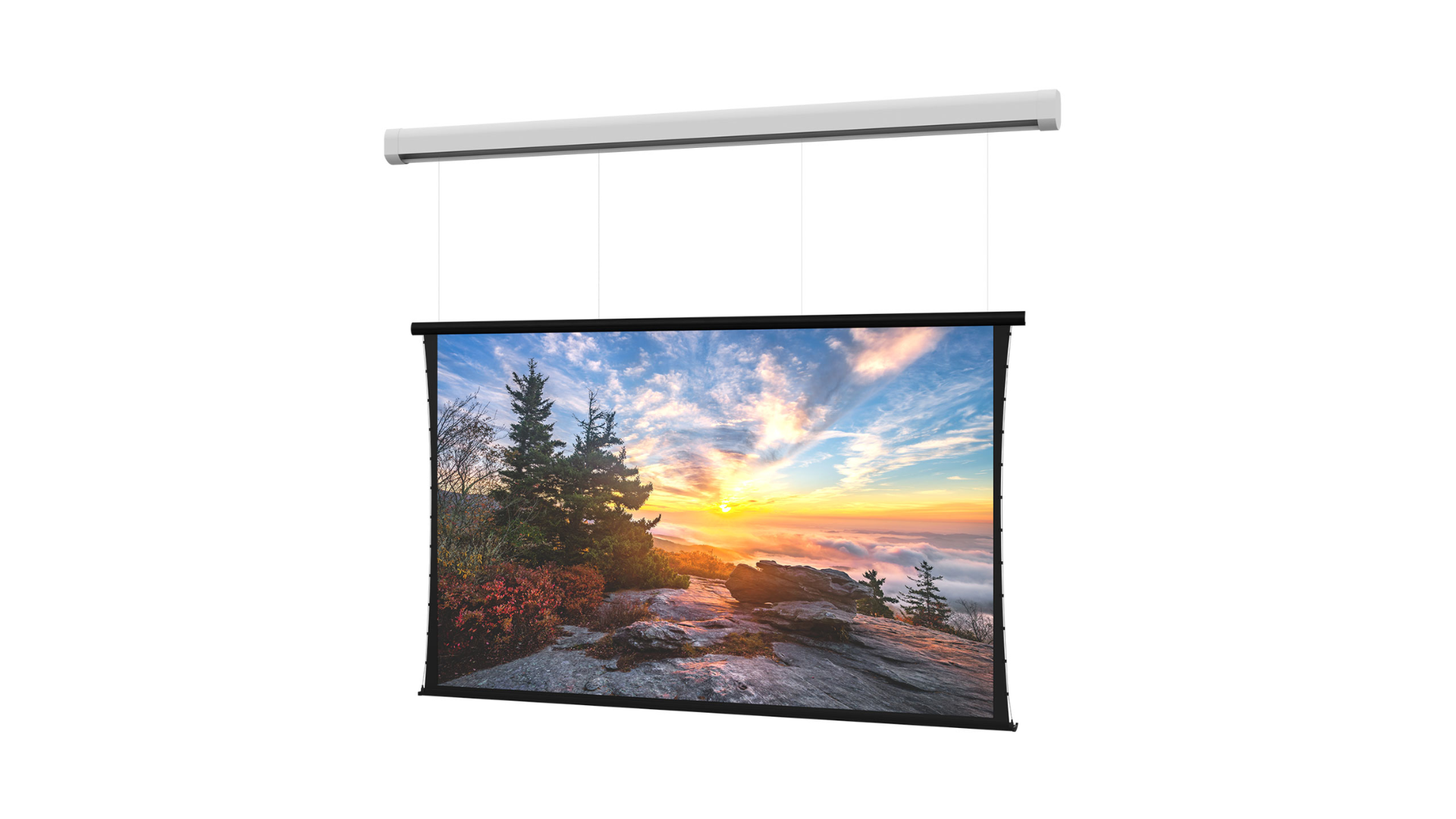 This fixed frame screen features an ultra-thin bezel and low profile. Designed to look like a large flat panel, the UTB Contour can more than double the size of the largest flat panel televisions available.