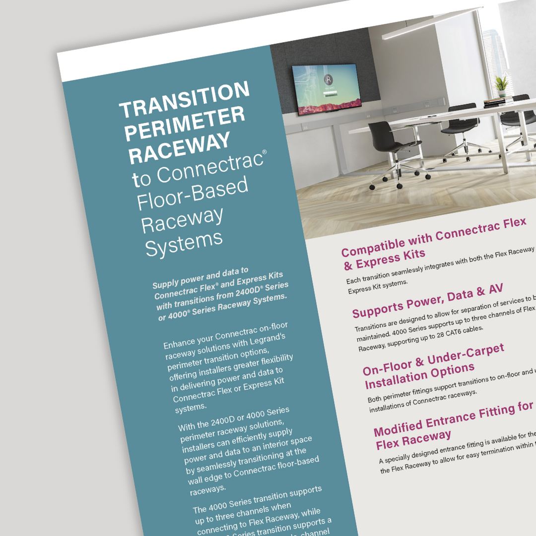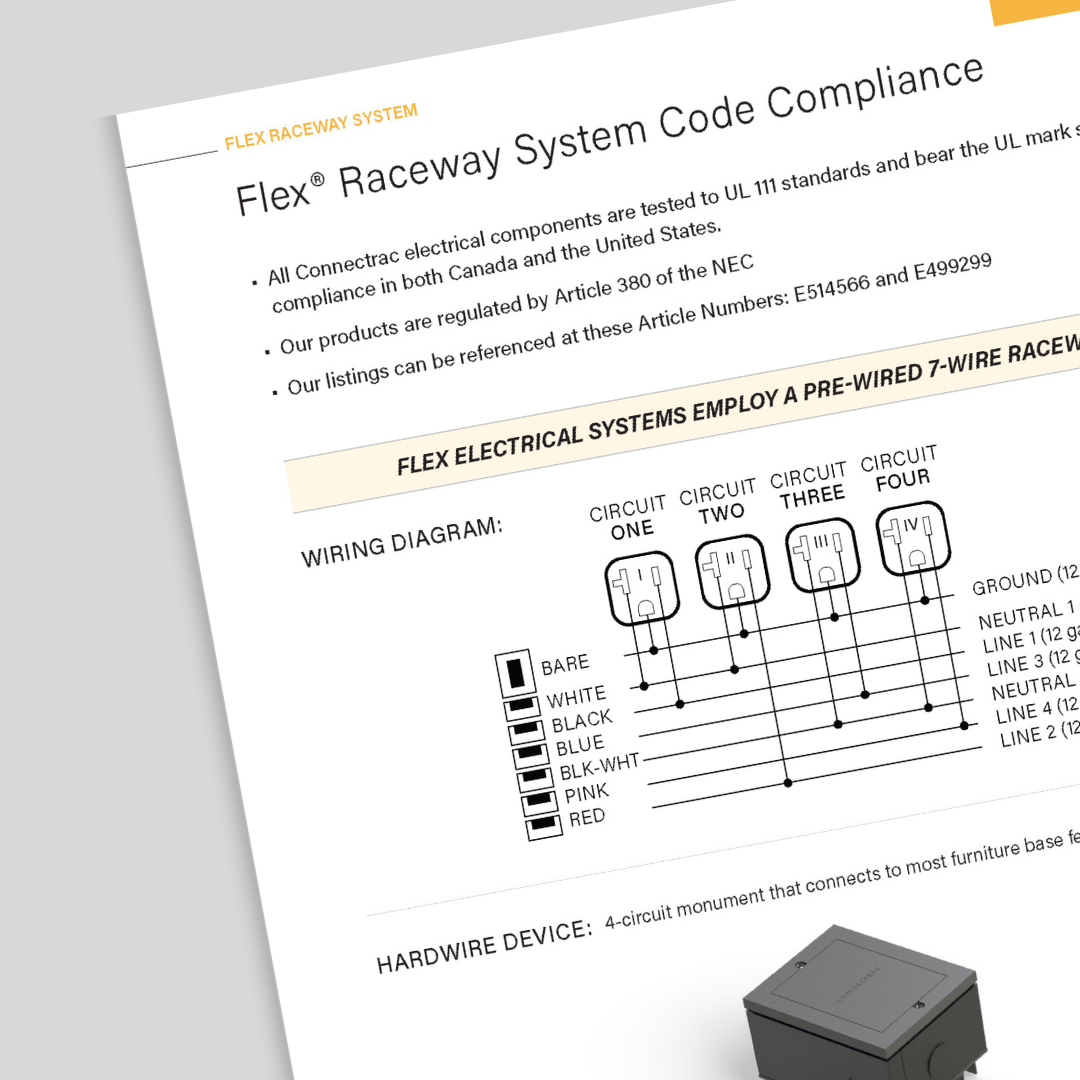 • Designed to be utilized with the Connectrac Flex Raceway system, compatible with both under-carpet and on-floor installation options.