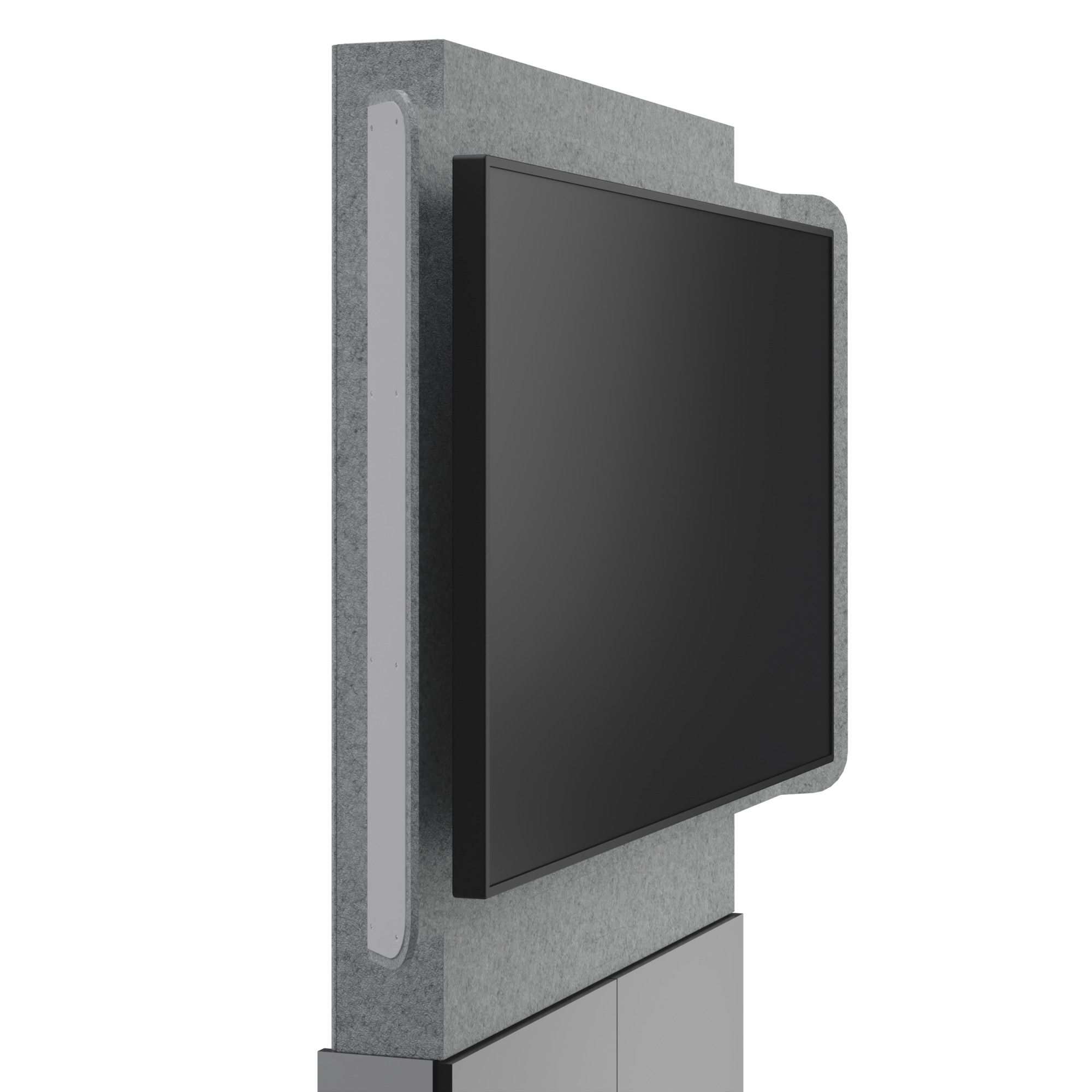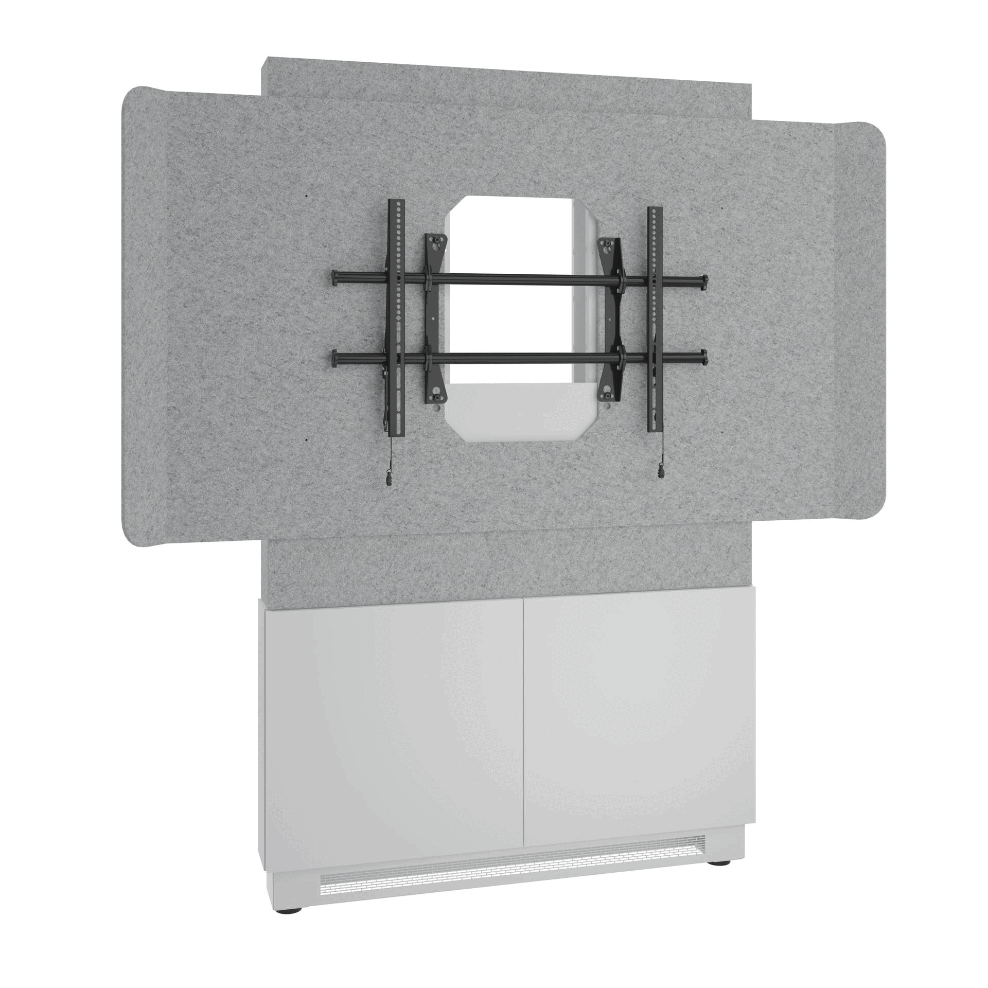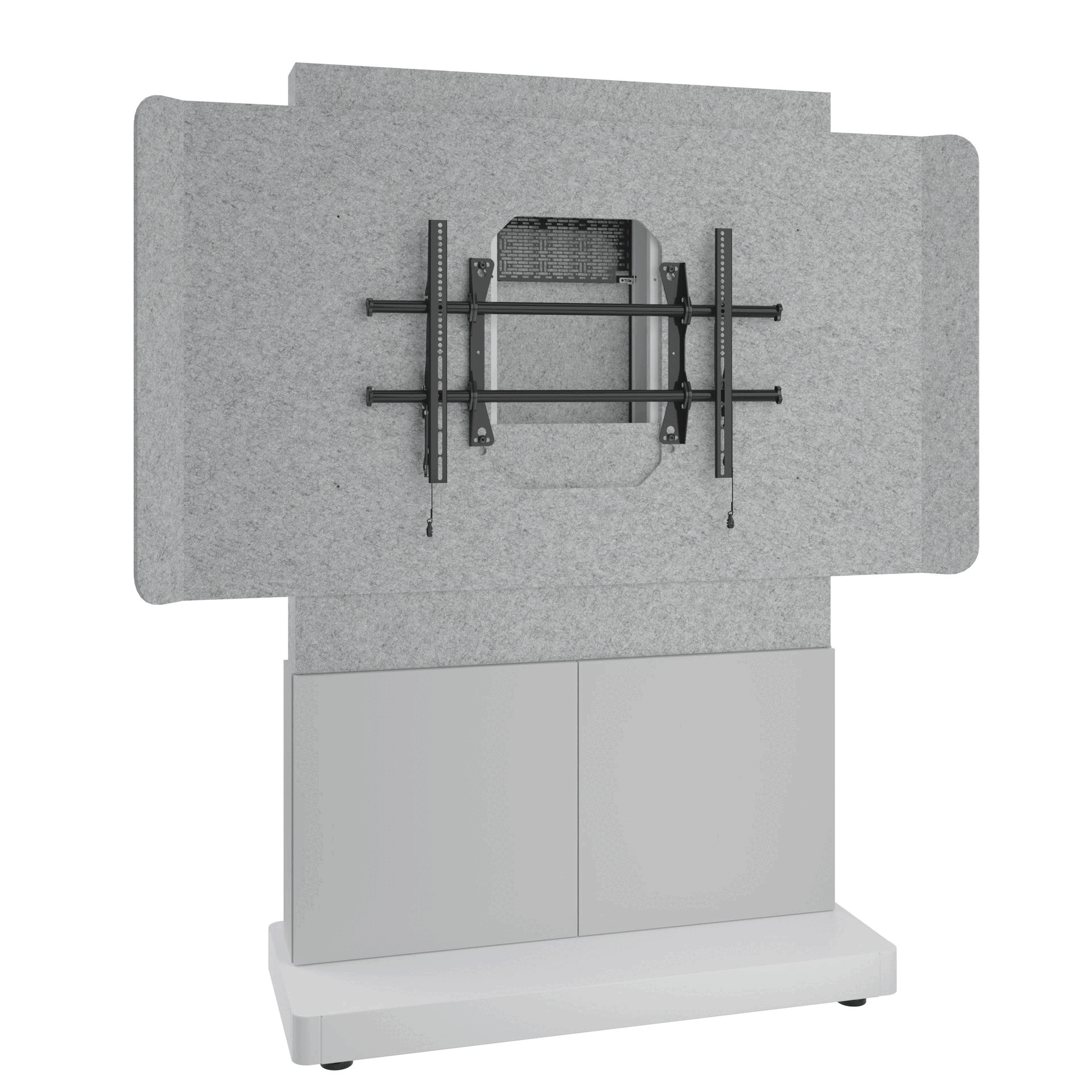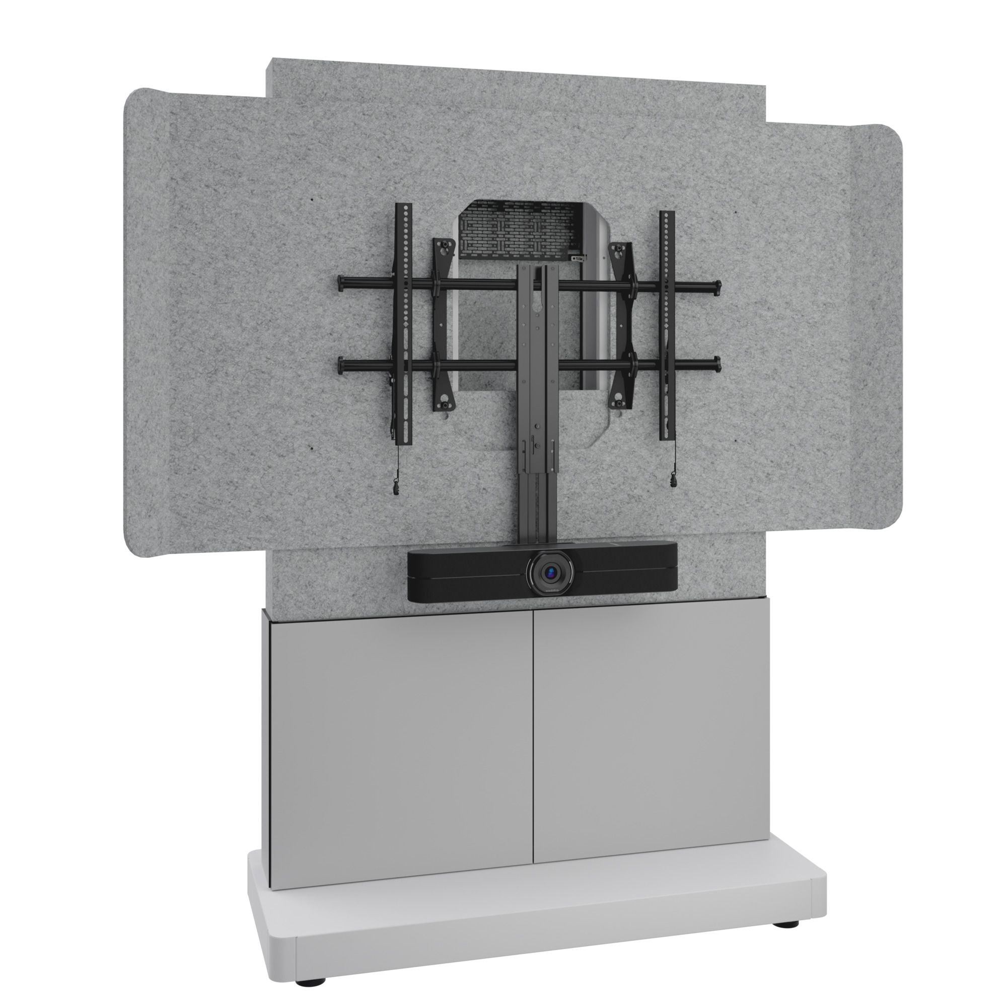This Display Stand has ample equipment mounting, including Lever Lock™ for all your videoconferencing components. An included properly sized display shroud is outfitted with acoustic felt to keep the noise levels and audio reverberation to a minimum to ensure the highest quality audio experience for both in-person and remote audiences in open spaces.