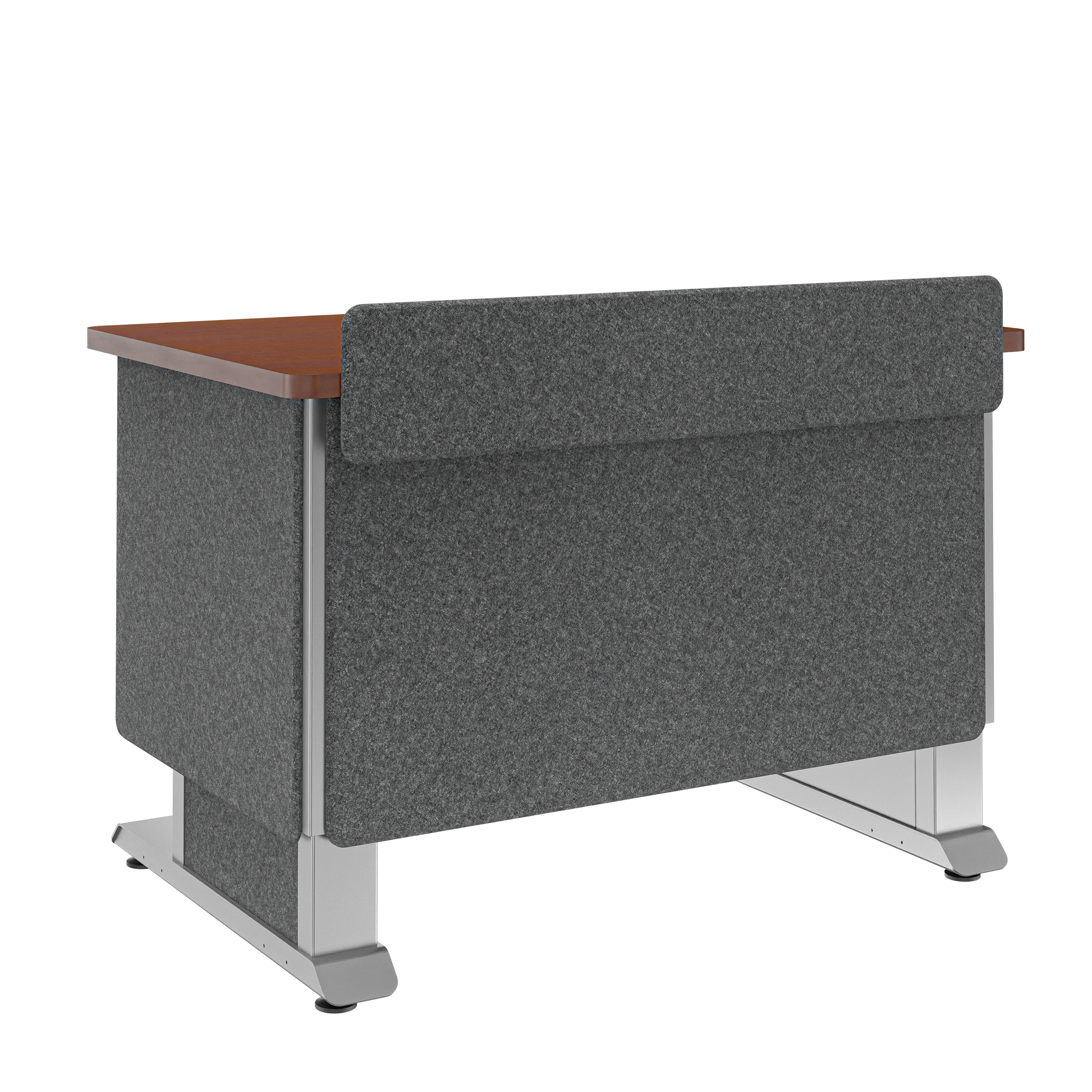 Envision what a Forum Lectern and coordinating Side Rack in the Wilsonart® Biltmore Cherry and Charcoal Felt colorway would look like in a university presentation room.