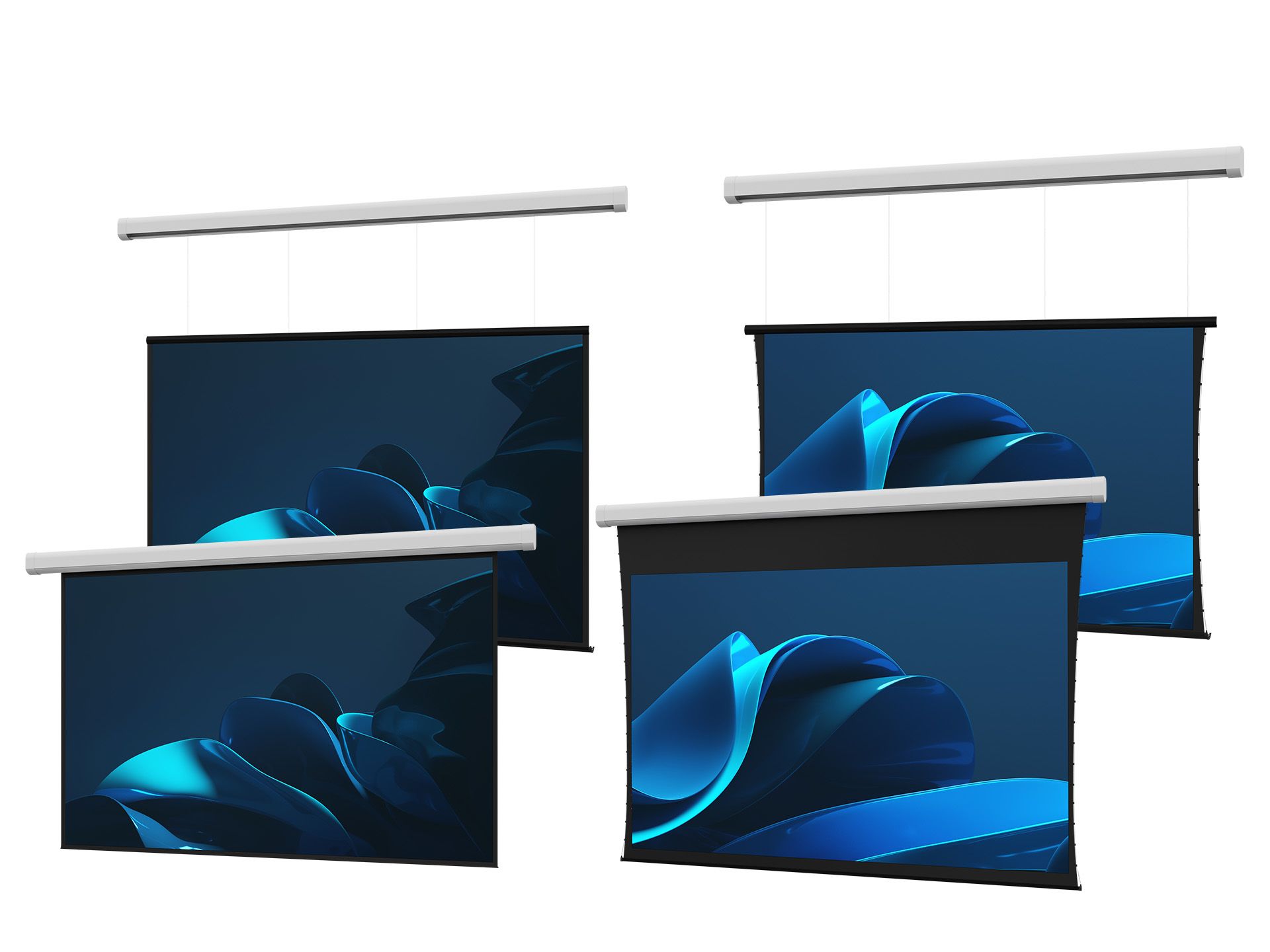 For installation flexibility, the Myriad system includes the Myriad Conceal ceiling-recessed screen, which eliminates the need for additional trim work, and the Myriad Reveal wall—and ceiling-mounted screen with adjustable brackets. These features accommodate different mounting preferences, making the Myriad suitable for diverse spaces, from boardrooms to lecture halls.