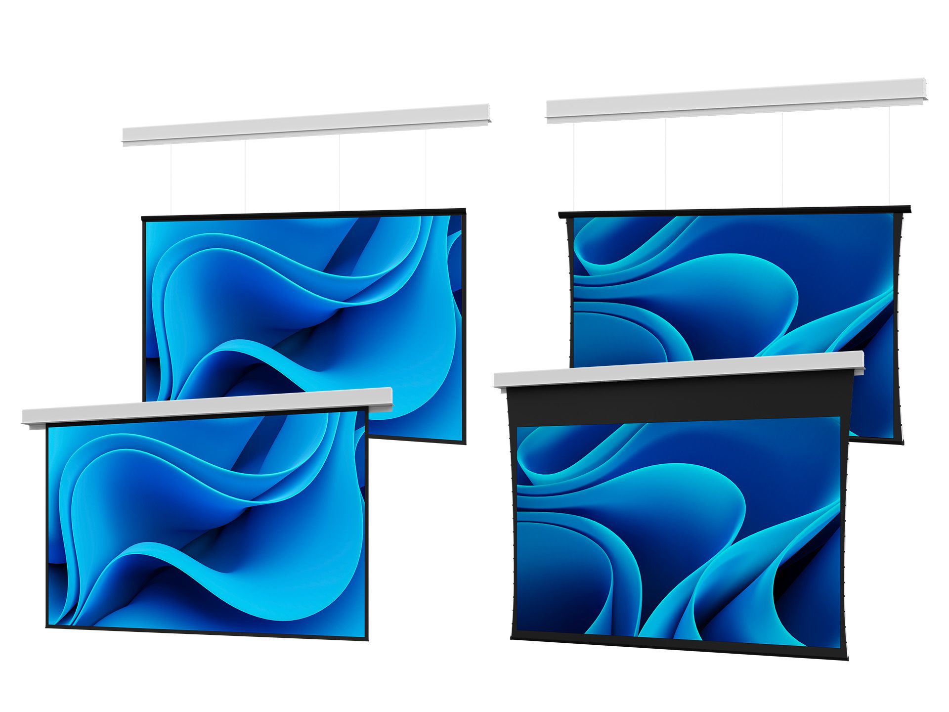 The SightLine cable drop feature provides a sleek, modern look ideal for professional and academic environments. Available in sizes from 14’ to 16’ (4-5 m) wide in 16:9 to 16:10 formats, it fits various room dimensions. It ensures crisp, clear presentations with options like HD Progessive 16K ready and Parallax® Ambient Light Rejection surfaces.