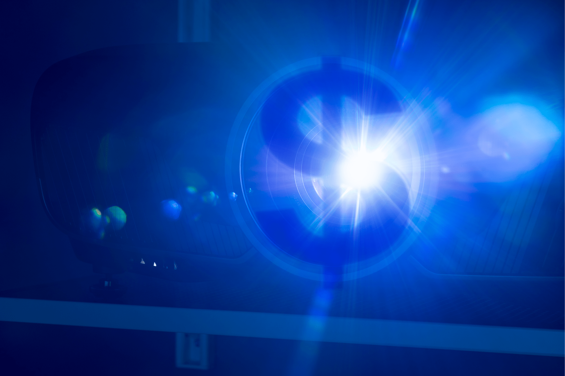 Regarding large-scale projects for staging and live events, two-piece projection has this crowd on their feet! Da-Lite’s flagship lineup of portable screens – Fast-Fold®, provides sizes up to 367” diagonal, easy case transport with foldable components and screen surfaces, quick set-up and teardown for ballrooms, pop-up spaces, and impromptu meetings. Other than the behemoths of light output, most projectors can be moved around easily, positioned on a table, mounted in the ceiling, and used for front- or rear-screen applications.