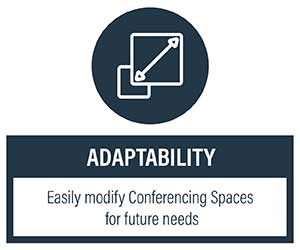 That goes for downsizing as well. Thoughtful design can adapt to repurpose a large room into two smaller conference rooms depending on the needs of the business.